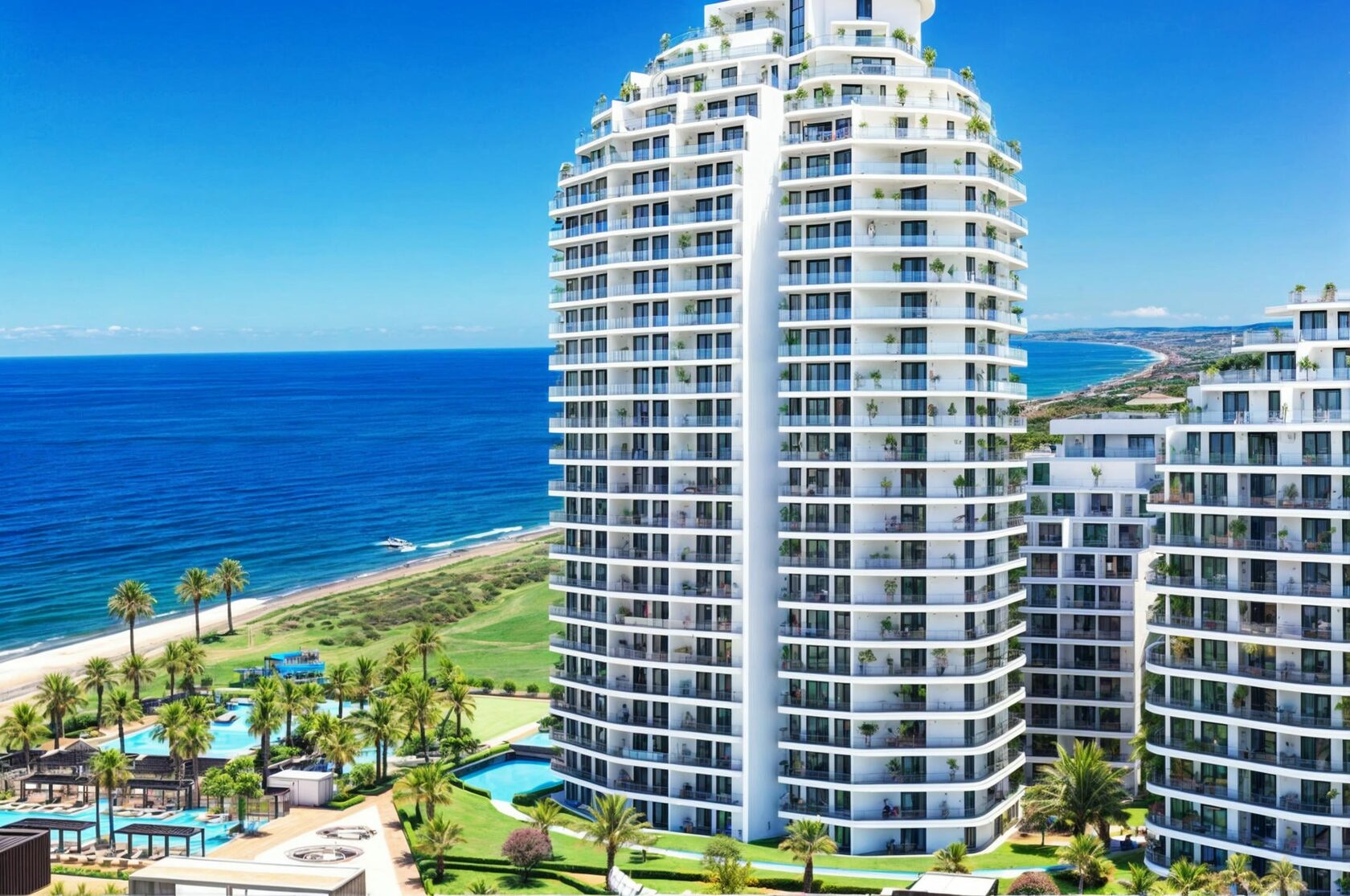 Gaziveren'in manzaralı bölgesinde modern bir konut kompleksi. Sadece 500 metre mesafede deniz bulunan bu kompleks, doğa manzaralı lüks daireler sunuyor. Konforlu yaşam ve tatil için havuzlar, spor salonu, SPA ve çocuk oyun alanı gibi olanaklar mevcut. Doğa, konfor ve modern altyapının mükemmel birleşim